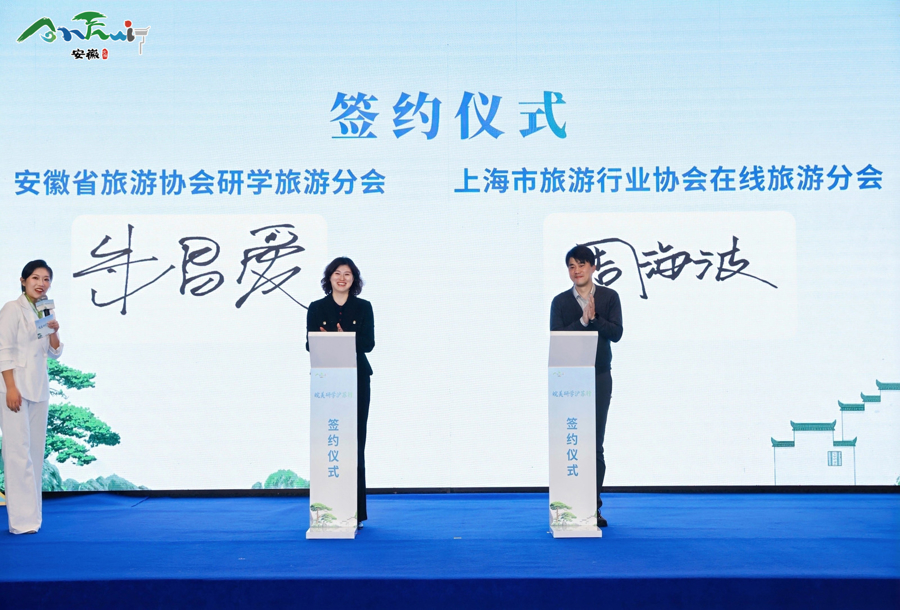 为推动合作意向落地,推介会上,上海市旅游行业协会在线旅游分会与安徽省旅游协会研学旅游分会共同签署了《沪皖研学旅游高质量发展框架协议》,标志着两地研学旅游合作进入新的发展阶段。双方将在资源整合、产品研发、市场推广、人才交流等方面开展深度合作,共同助力长三角研学旅游一体化发展。