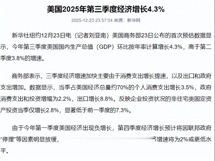 2025年第三季度,美国GDP增长了4.3%,这个数字摆出来,确实像是一瓶强心剂。但问题是牛盈服务中心,这不是正常经济增长的结果,而是特朗普摁着油门猛踩,强推AI、挥舞关税大棒、放任通胀、搞财政刺激……