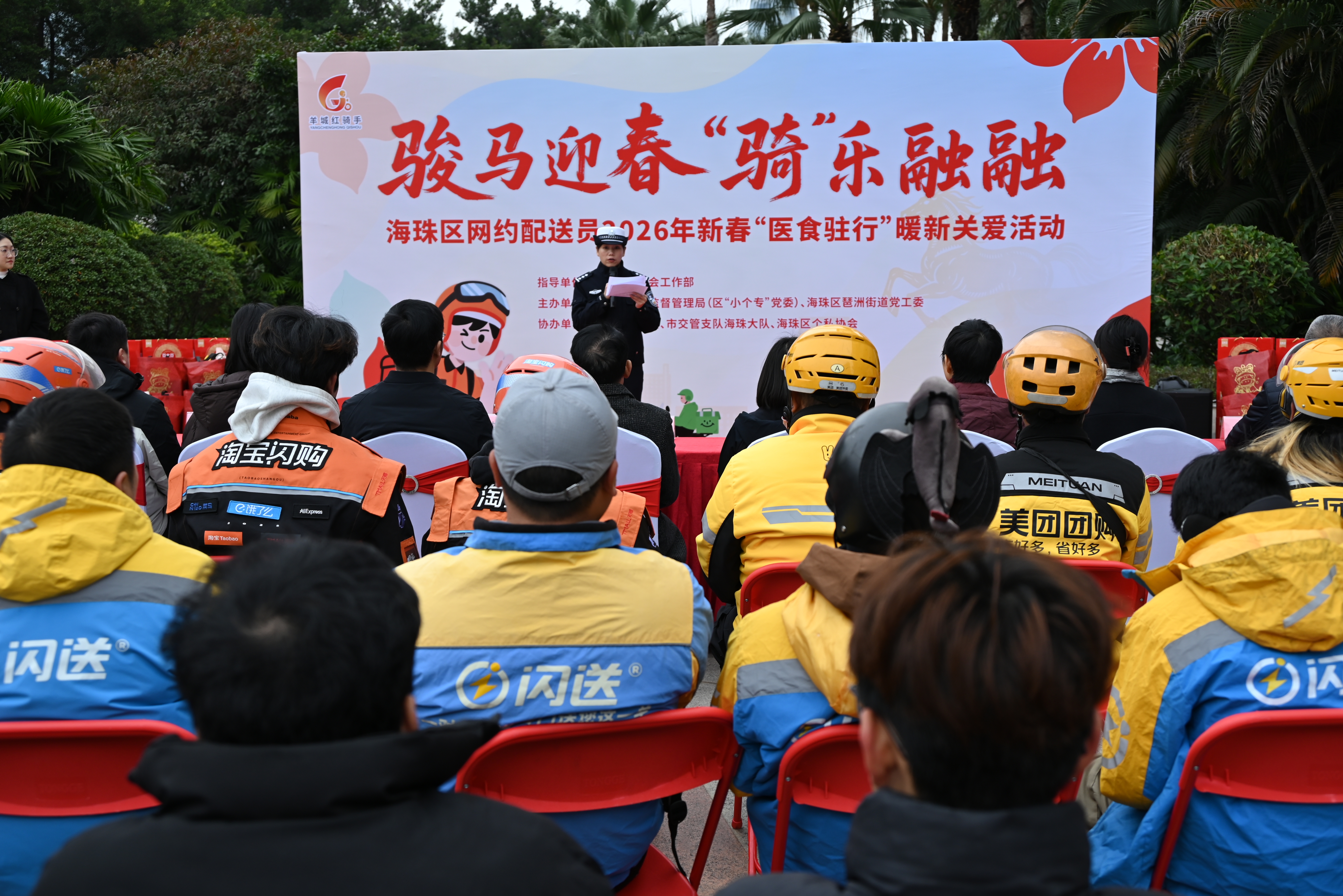 据悉,此次活动是海珠区深化党建引领新就业群体“暖‘新’四季”行动的生动实践。近年来,该区深入实施“星火联新”工程,聚焦新就业群体急难愁盼,通过打造“羊城红骑手”阵地矩阵、建立“医食驻行”暖“新”关爱等常态化机制,努力将服务精准送到“新”坎上,从阵地安家到暖心服务、从安全护航到文化滋养、从关爱帮扶到权益维护,海珠区用“暖‘新’四季”模式,让新就业群体在城市奔波中“有温度、有底气、有归属”。